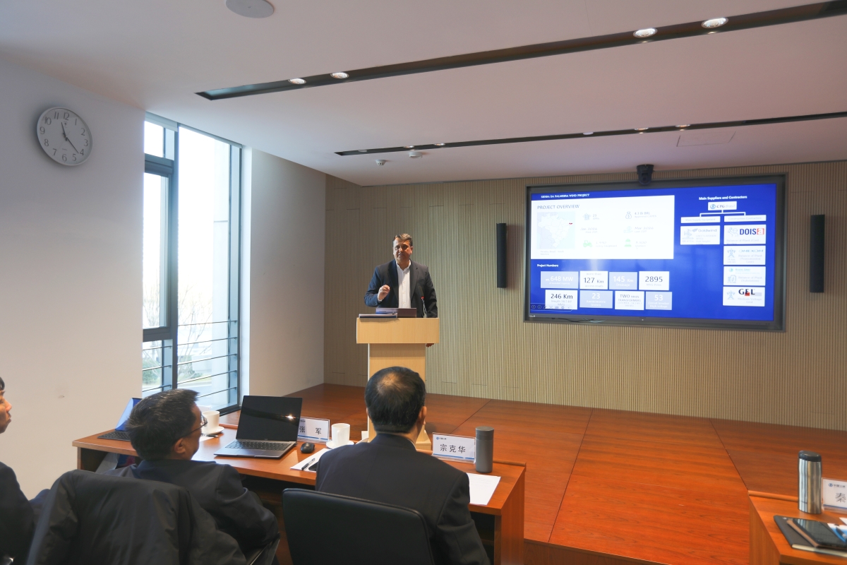 會(huì)上,三峽國(guó)際綠地開(kāi)發(fā)中心介紹了在巴西開(kāi)展新能源項(xiàng)目建設(shè)情況,三峽巴西公司新能源部主任Lucas等四位屬地員工分別圍繞新能源項(xiàng)目開(kāi)發(fā)以及項(xiàng)目建設(shè)中質(zhì)量管控、安全管理、成本控制等方面進(jìn)行了分享交流。